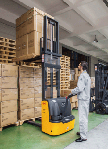 提升高度大约在1.8米时(根据所装配的提升门架):高于安全接通高度时, 堆垛车将减低行驶速度至大约3km/h;
