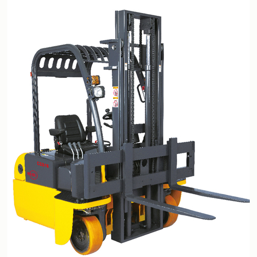 四向叉车以蓄电池为动力源,以电动机及其控制系统作为本车的动力系统,具有噪音小,无排放污染,绿色环保的特点。
